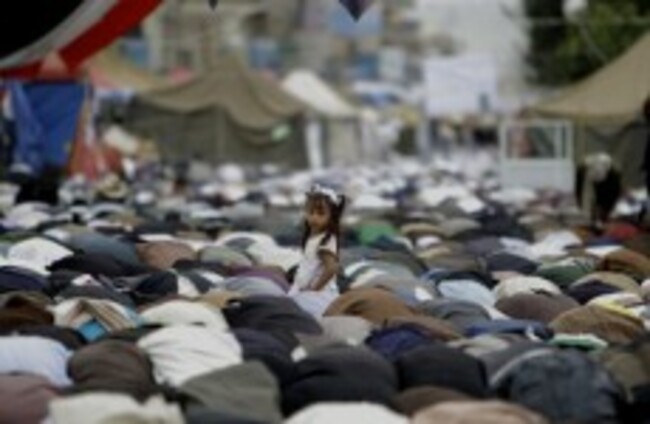 A Yemeni girl looks on while standing between anti-government protestors attending Friday prayers. Muhammed Muheisen/AP/Press Association Images