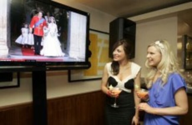 Annmarie Blennerhassett, right, from Kerry and Ellen Wallace from Cork watch the royal wedding at the Fitzwilliam Hotel today. Mark Stedman/Photocall Ireland