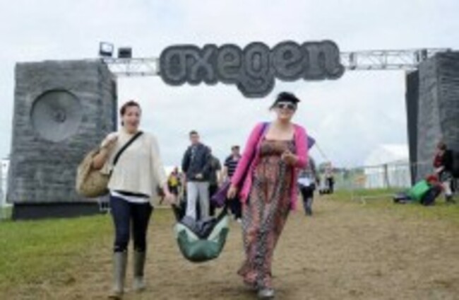 Denise (left) and Brigid Gibson from Tyrone pack up and leave Oxegen, Punchestown, Co. Kildare. Sasko Lazarov/Photocall Ireland
