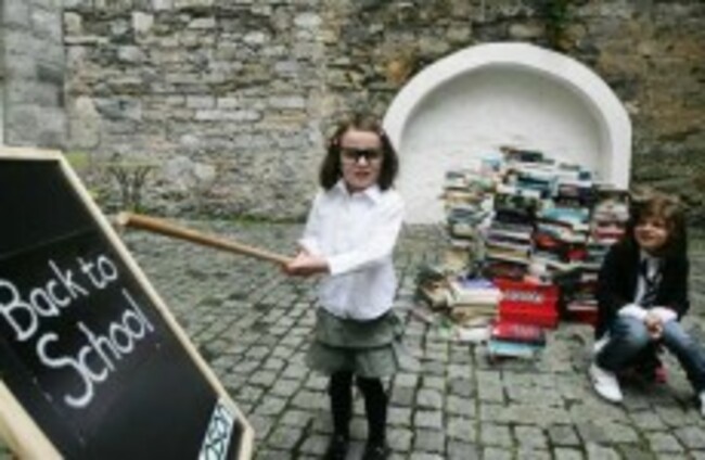 Back To School. L to R. Alice Brannigan aged 4 yrs from Crumlin and Brandon Noble aged 8yrs from Portmarnock in Dublin at the launch of Easons new one stop shop for all textbooks and stationary, EasonSchoolShop.com Eamonn Farrell/Photocall Ireland