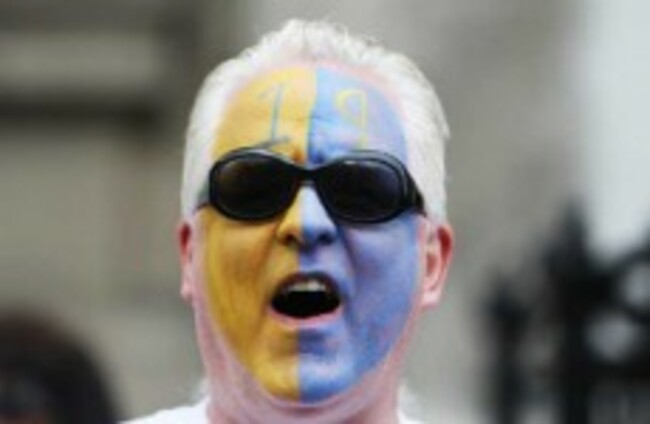 Mark Lawlor protests outside the Department of Finance against proposals to axe some 200 Dublin Bus services across the city. Leon Farrell/Photocall Ireland