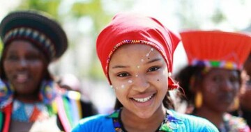 Sandra Nomgqokwana (15) from the South African dance group Moribo Wa Afrika,pictured on Connell Street in Dublin as they celebrate Africa Day 2011. Leon Farrell/Photocall Ireland.
