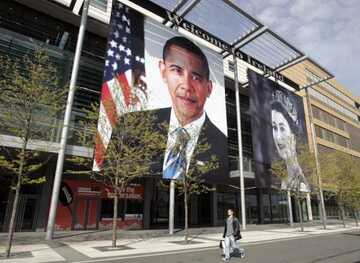 • Today, five-storey high posters of Queen Elizabeth and US President Barack Obama were hung outside Harry Crosbie’s Point Village – in order to give a warm welcome Ireland’s guests as they arrive for their visits on 17 and 23 of May, respectively.