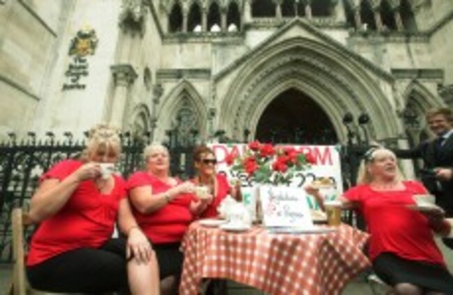 Margaret, Maria, Nora and Kathleen McCarthy demonstrate at the Royal Courts of Justice after losing last week's appeal against their eviction. Yui Mok/PA Wire