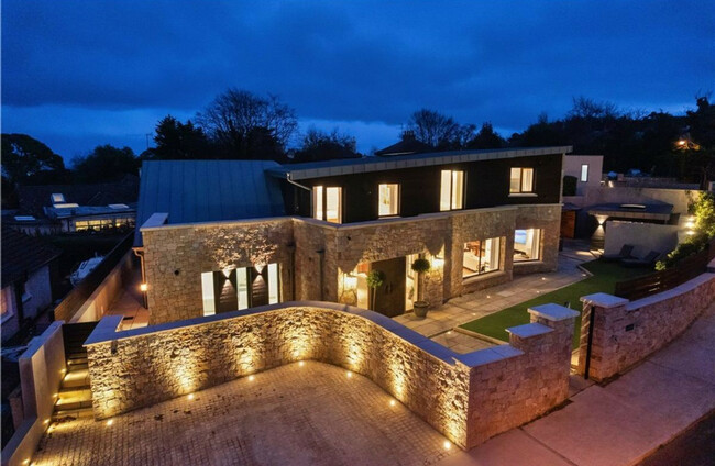 Those with interior designer spirit take note – this home is the epitome of creativity and functionality. The kitchen boasts top-of-the-range integrated Miele and Bosch appliances, a hidden pantry, and a large utility. A large sliding door opens out to a low-maintenance south-facing patio/garden with a home office, storeroom and built-in BBQ/outdoor kitchen, making it a gorgeous setting to unwind in the evening or in the morning. A cinema room provides further relaxation opportunities with its cosy electric fire and a bespoke walnut bar, whilst a playroom offers some excitement, with a climbing wall and a custom-made built-in play area boasting its own multicoloured lighting system and a slide.