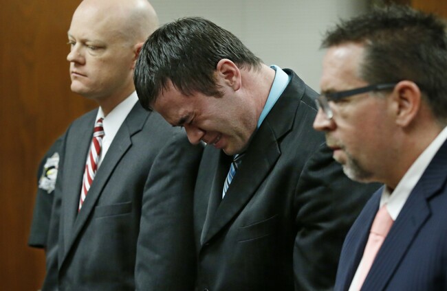 Daniel Holtzclaw reacts after the verdicts were read in his trial in Oklahoma City. Associated Press