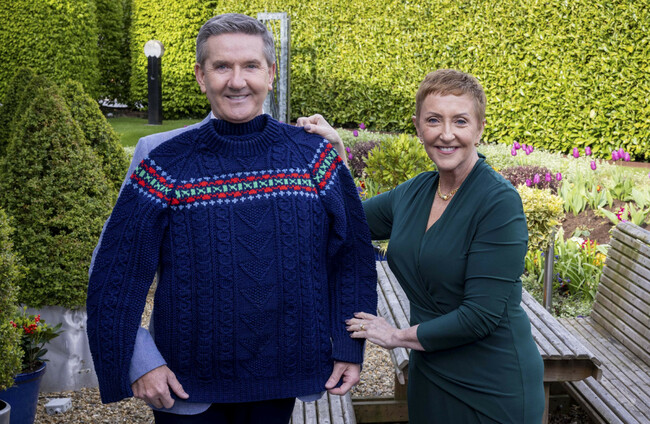 Daniel O'Donnell and his wife Majella with one of his Aran jumpers. Conor Healy/Picture It Photography