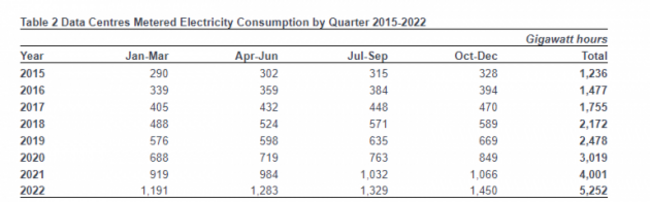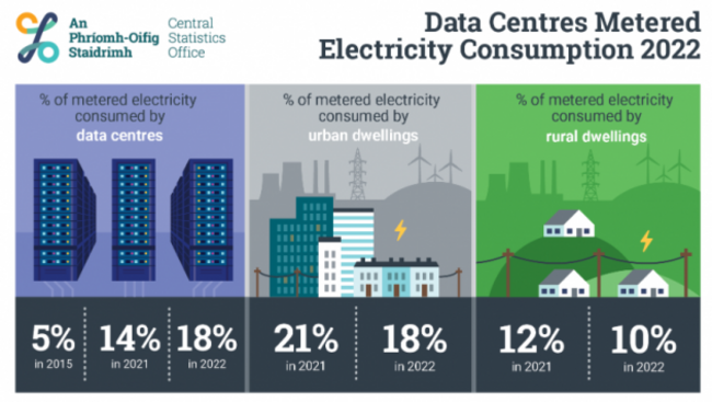 DATA CENTRES IN Ireland consumed 31% more electricity in 2022 than in the previous year, according to figures released by the Central Statistics Office.