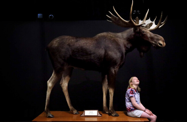 Pictured at a special preview of the Dead Zoo Lab for members of the community local to Collins Barracks yesterday is 12-year-old Sadie Hanley with a moose. Mark Stedman