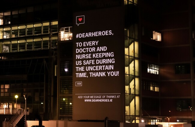 MESSAGES OF THANKS and support are being projected across the Mater Hospital in Dublin to show appreciation for frontline healthcare workers.