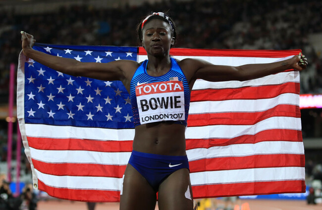 Bowie was also a three-time Olympic medallist and won gold for the United States in the 4x100m relay at Rio 2016.