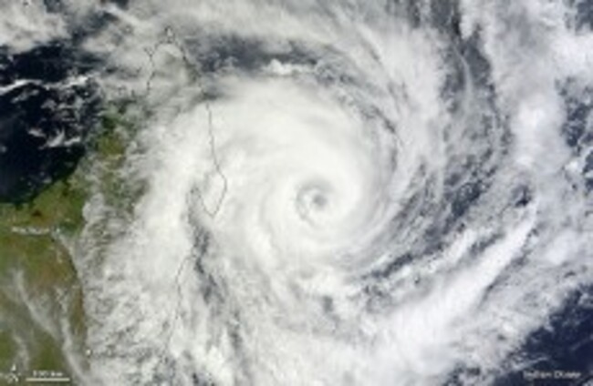 Tropical Cyclone Bingiza made landfall on Madagascar on February 14, 2011, as pictured by NASA NASA Godard Photo and Video via Flickr