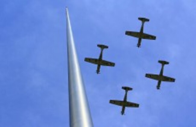 Aircraft from the Irish Defence Forces fly past the Spire on O'Connell Street as part of this year's Easter Rising events Julien Behal/PA Archive/Press Association Images