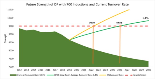 Raco has said even with an aspirational 700 inductions each year, the Defence Forces will never reach the designated strength at the current turnover rate.
