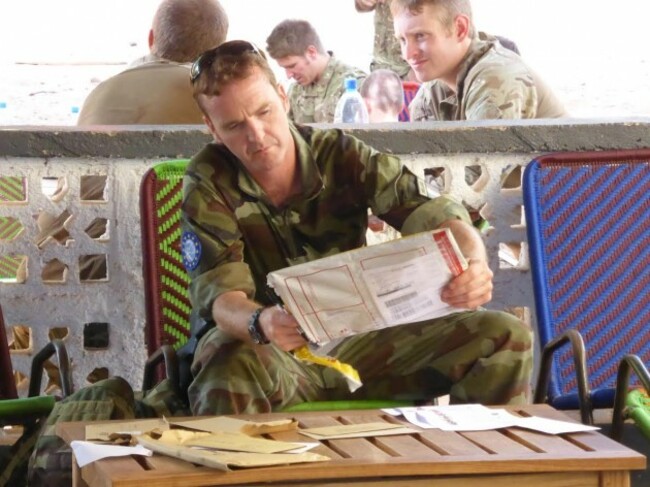 Commandant Michael Nestor, from Laois, who is responsible to the administration of the postal votes in Mali opens the courier’s envelope containing the votes.