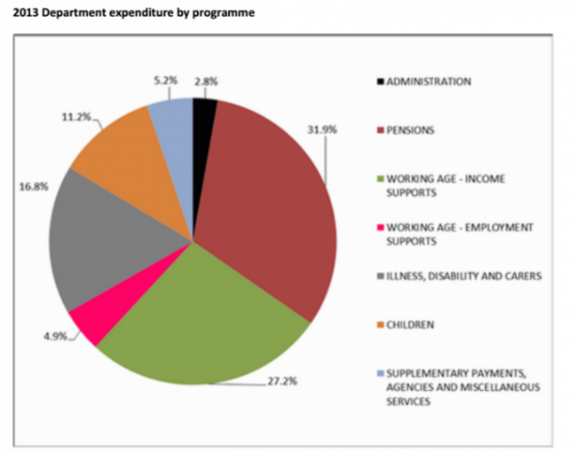The biggest chunk of payments went towards pensions, which accounted for almost one third of all social welfare programmes expenditure.