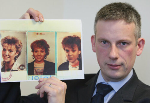 Source: Det Supt Raymond Murray with pictures of murdered German backpacker Inga Maria Hauser. Image: PA Images/Paul Faith" title="">