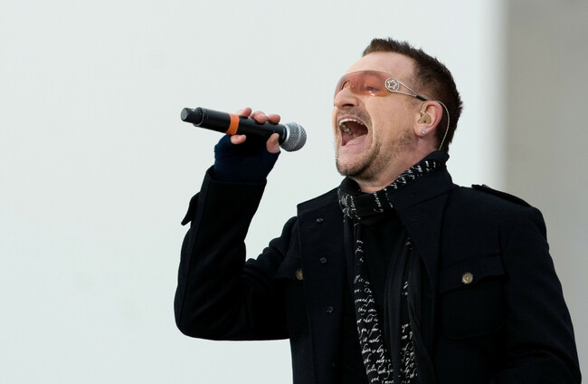 It's not clear if Bono is signing a song he likes or dislikes in this photo Alamy Stock Photo