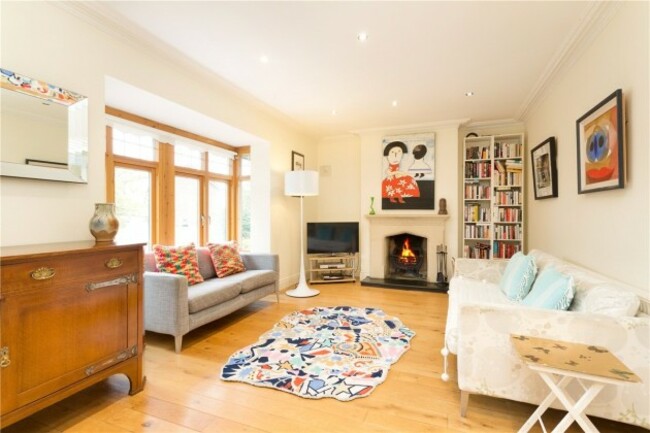 Set back from the road, the home’s living space stretches over three reception rooms and a large kitchen and breakfast room for family eating.