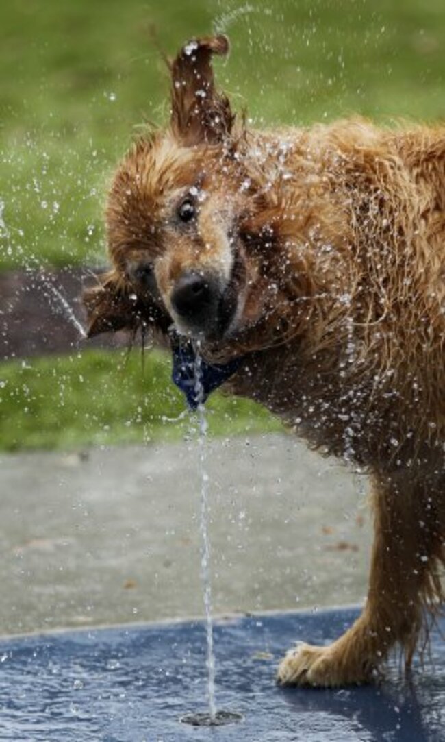 THIS IS BANDIT the dog, trying to get his chops around a delicious drink of water at the new Dream Dog Park in Alabaster, Alabama.