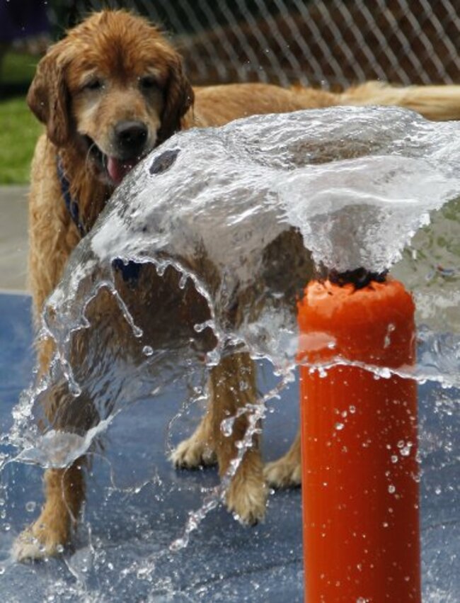 The park includes custom-designed water splash pads to keep dogs cool during the hot summers and a fetch football field with fire hydrant goal posts.