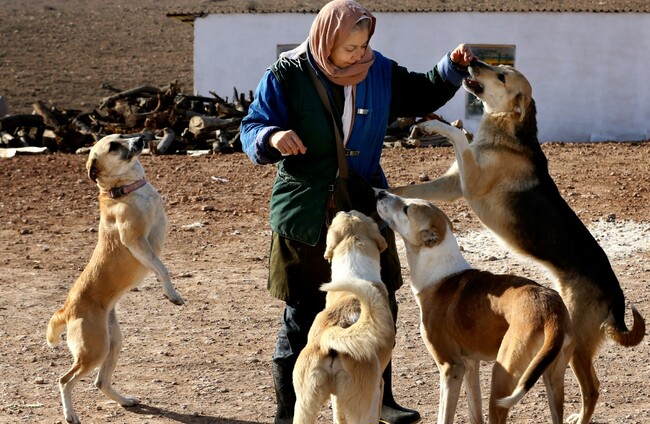 A visitor playing with dogs at an animal shelter outside of Tehran in 2014 AP Photo/Vahid Salemi