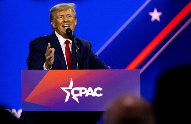 Former US President Donald J. Trump speaks at the 2023 Conservative Political Action Conference (CPAC) in National Harbor, MD, USA, on Saturday, March 4, 2023. ABACA/PA Images