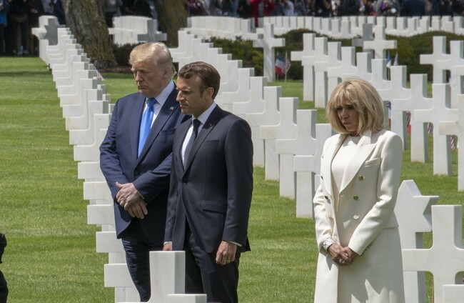 Trump during a visit to a Normandy graveyard in 2019. Edward Salcedo/PA Images