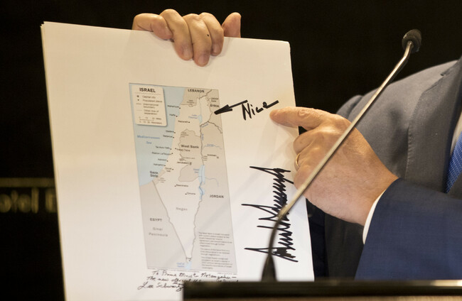 Donald Trump sent Benjamin Netanyahu a signed map of Israel with the word 'nice' beside annexed territory