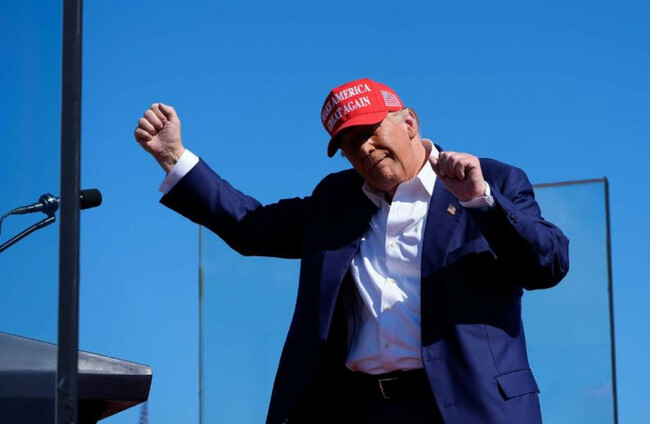Donald Trump dancing after speaking at a campaign rally recently Alamy