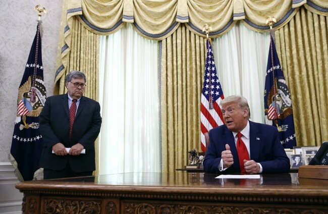 US President Donald Trump and attorney general William Barr. PA
