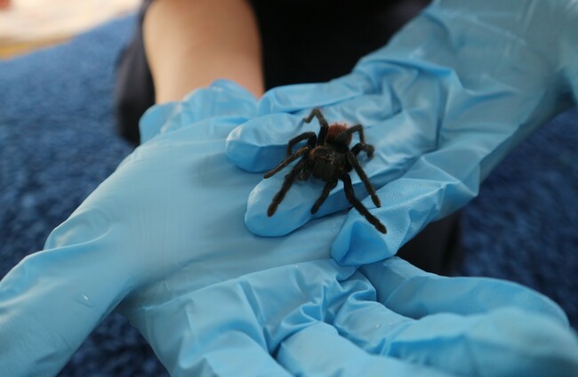 ISPCA care assistant Leela Voss, who is experienced in handling exotic animals, responded to the call and identified the spider as a Mexican red rump.
