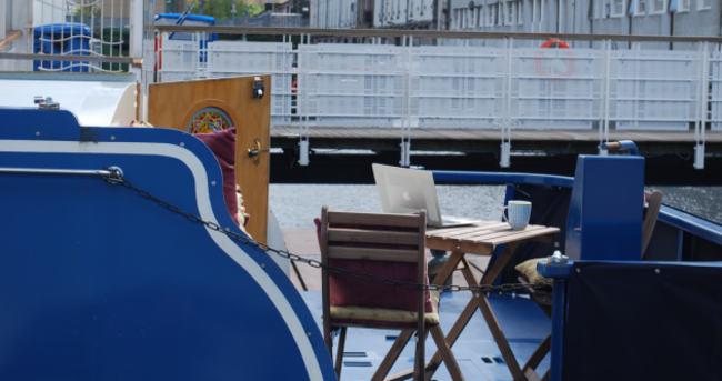 The deck of the The Grey Owl, DoSpace's co-working office in the Dublin docks DoSpace.ie