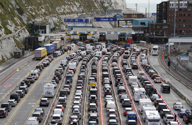 Bumper-to-bumper traffic made its way towards the Port of Dover in England yesterday.