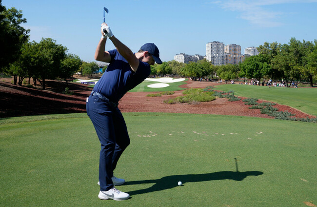 Rory McIlroy in action in Dubai. Alamy Stock Photo