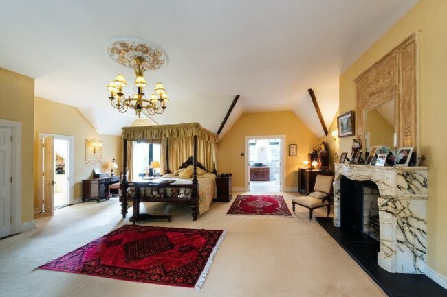 There is also a drawing room with open fireplace, a library with built-in bookshelves and a feature window, a tv room and a study/playroom on this level also.