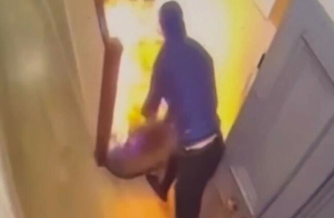But CCTV footage that emerged yesterday appeared to show that the fire was started by a man who entered the building and poured petrol in the stairwell, before setting it alight.