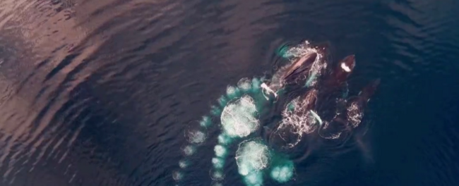 He doesn’t specify what species they belong to, but it’s an incredible sight. In 2012, a team of scientists reported that some of these whales (Humpbacks who frequent Antarctica in the summer and autumn) are hanging around Antarctic shores longer than previously estimated.