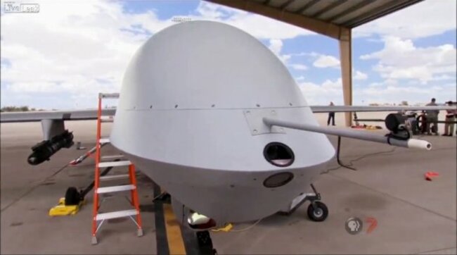Whether it has been deployed in the field remains classified, but the system has universal compatibility. Here, it is seen attached to an armed Predator.