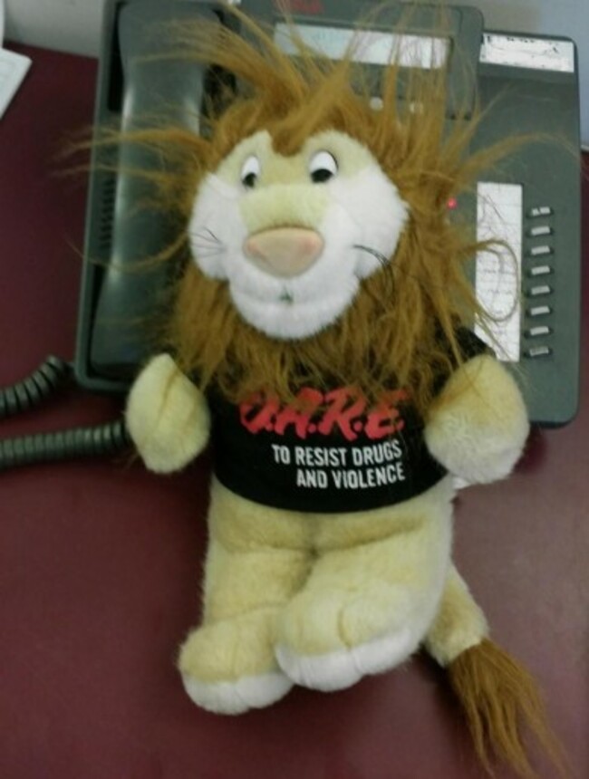 “Daren the lion” is a “spokes-lion” of D.A.R.E. – which stands for Drug Abuse Resistance Education – a program founded in 1983 that aims to educate young people about staying away from drugs, gangs and violence.
