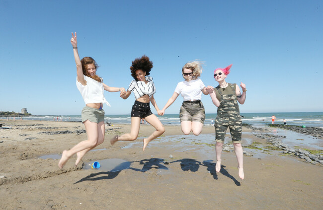 Jumping for joy on Portmarnock Beach yesterday. RollingNews.ie