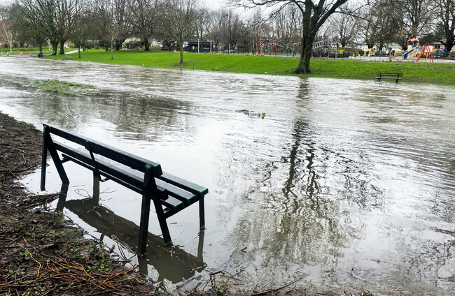 The Tolka River in Griffith Park, Drumcondra, overflows onto the park land after heavy rain on 13 February. Rollingnews.ie