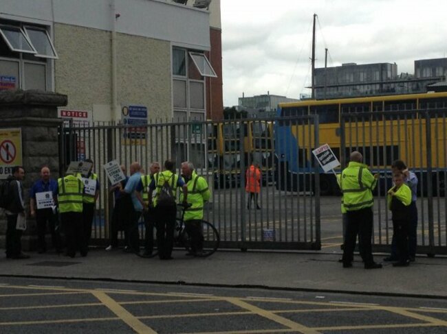 Striking workers picket the Ringsend depot this morning (Image: Ronán Duffy/TheJournal.ie)