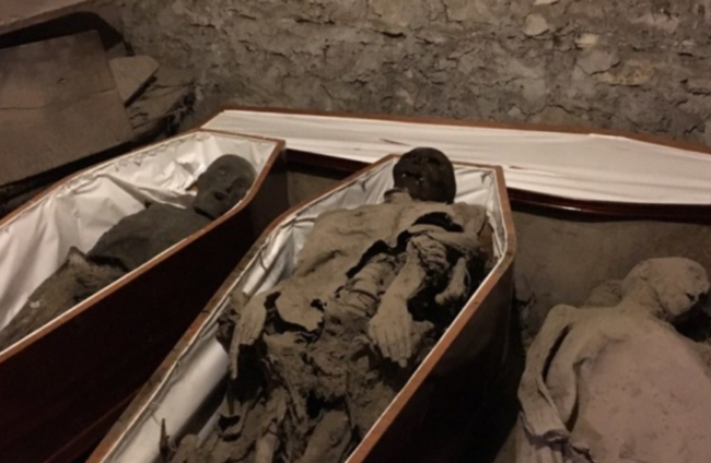 The mummified remains in the crypt are believed to have been destroyed by the water that was required to put out the fire.