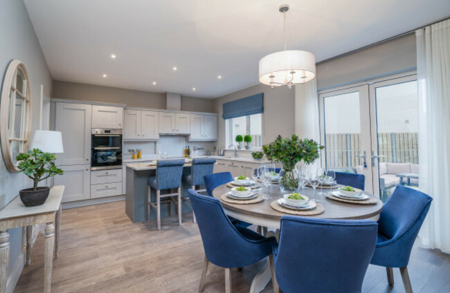 With 10 house styles available, prices here range from €395,000 for a three-bed ‘Heron’ style detached bungalow to €595,000 for a five-bed ‘Sanderling’ style detached home. Each home is designed with the latest sustainable and renewable technology to keep energy costs low. Currently, the ‘Dove’, ‘Starling’ and ‘Kestrel’ style showhouses are on view.