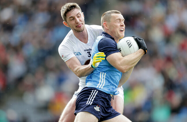Dublin's Con O’Callaghan and Shea Ryan of Kildare. Laszlo Geczo/INPHO