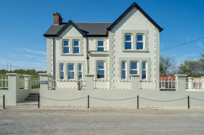 A cosy original sitting room with solid fuel stove adds warmth and character. Upstairs offers four generous double bedrooms, including an impressive main suite with en suite bathroom and balcony. Finished with cast-iron style radiators, excellent storage and quality bathrooms throughout, the home also benefits from a block shed, private services, and a highly efficient B1 BER, supported by a thermodynamic solar panel system for hot water.