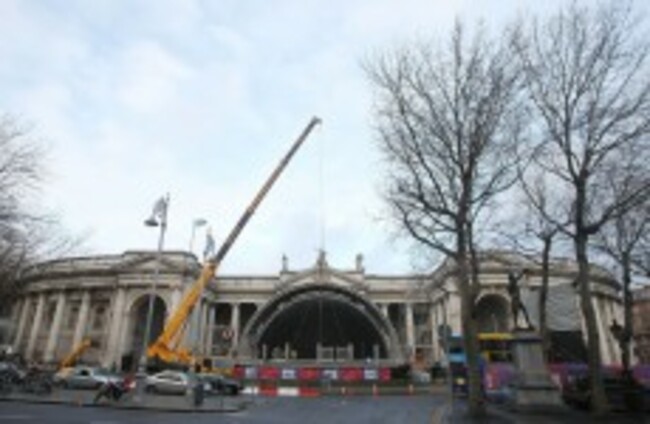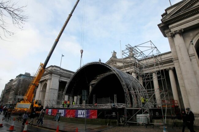 Preparations for Dublin's New Year's Eve concert on College Green earlier today Niall Carson/PA Wire