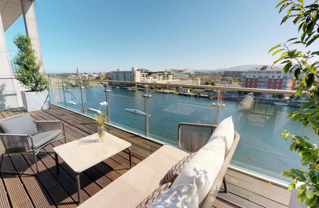 Penthouse 52 has been recently fully refurbished and has two separate balconies that let you soak up views of the Dublin Mountains. The apartment comprises of a hallway, a bright living and dining area with a fully-fitted and modern kitchen. Three nicely-sized bedrooms – two with en suite bathrooms – complete the space. The grounds surrounding this private development are well maintained, and there are two car parking spaces, too.