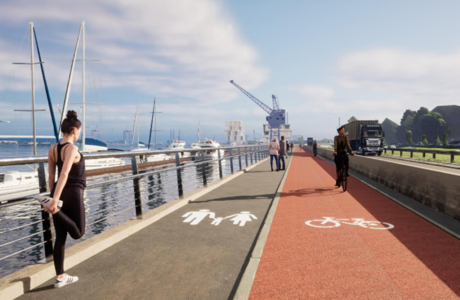 This would include 5.5 km of active cycle and pedestrian paths throughout the Poolbeg peninsula.